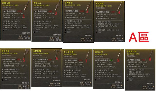 武器 (雙手劍、雙手斧、單手劍)