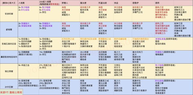 把這季新BOSS跟新的各職業暗金掉落整理了一下