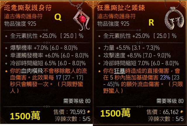 S.項鍊(攻速7/爆率7/毫不留情+2) 500萬 售