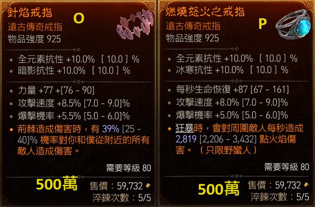 O.戒指(力77/攻速8.5/爆率5.5) 500萬