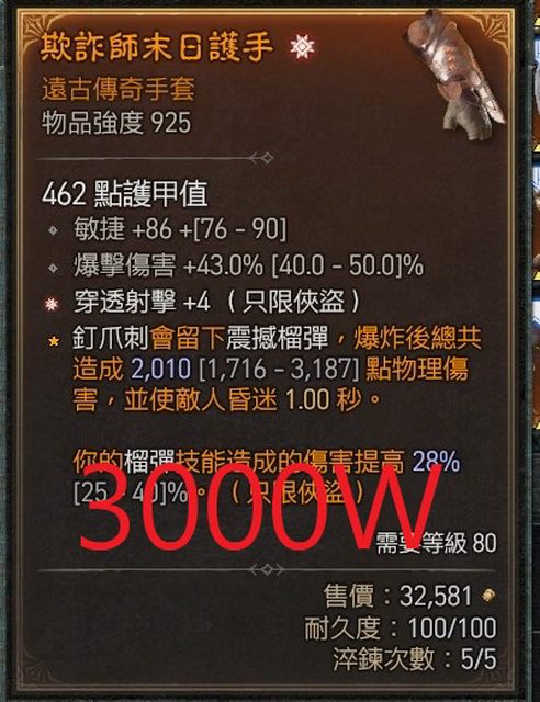 https://i.imgur.com/Vagvwlp.jpeg +4太古穿透射擊/敏/爆傷手套 3000W