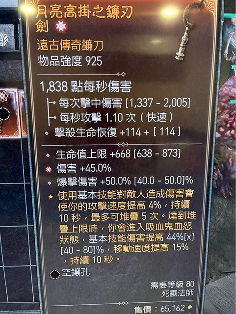 標題[交易] D4 S4死靈指揮官項鍊 太古單手鐮刀