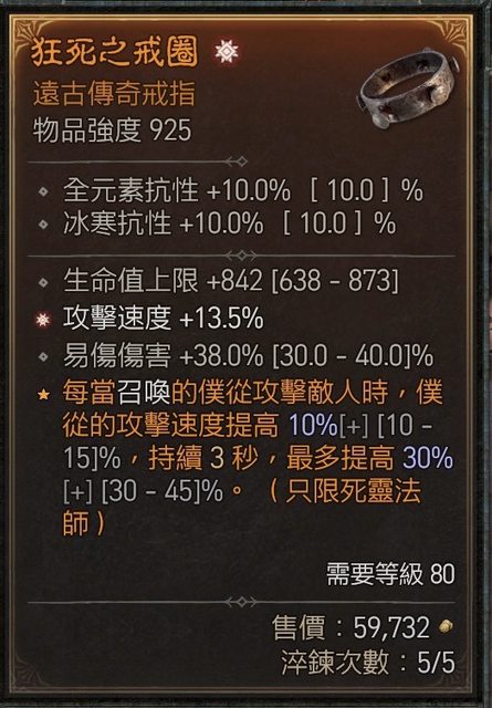 標題[競標] D4 S4 太古攻速戒指 /易傷/生命