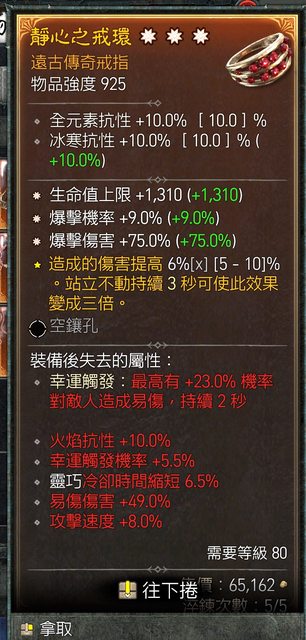 8.生命 爆傷 爆率三太古戒指 2E