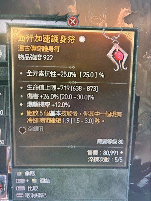 3. 太古移速傷害項鍊 1200w