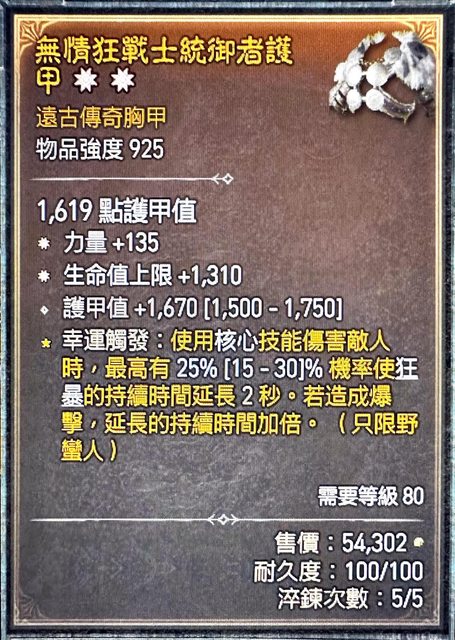 標題[競標] D4 S4 雙太古力量/生命 胸甲