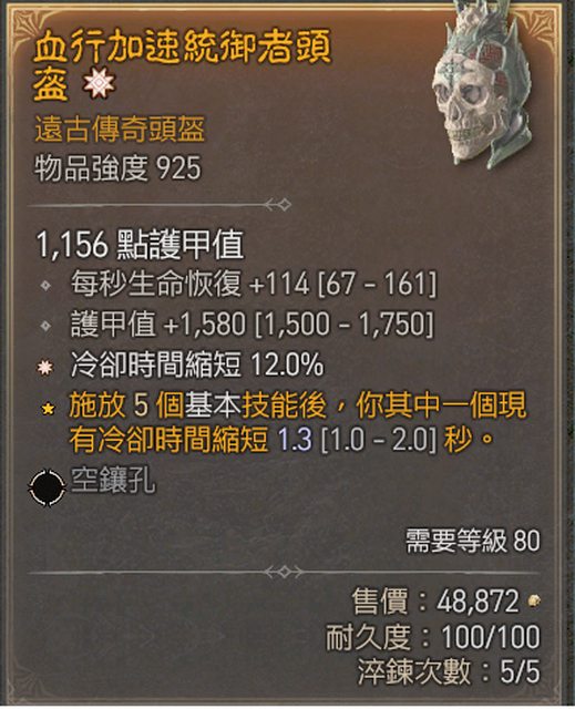 物 品:925 太古冷卻頭 護甲 秒回