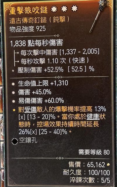標題[競標] D4 S4 三太古單手鎚 (生命/傷害/易傷)