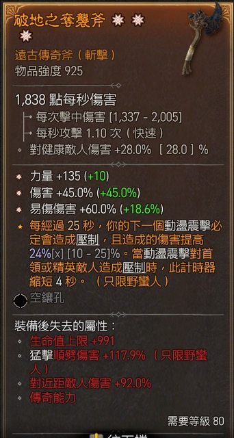: 物 品: 三太古單手斧 力量/傷害/易傷