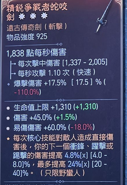 標題[競標] D4 S4 三太古劍 易傷、生命、傷害