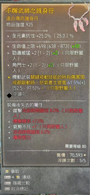 : 物 品:項鍊、角鬥士+2、勁道威猛+2、生命+698