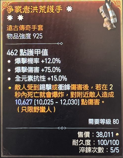 物 品 : 三太古爆率爆傷全抗手
