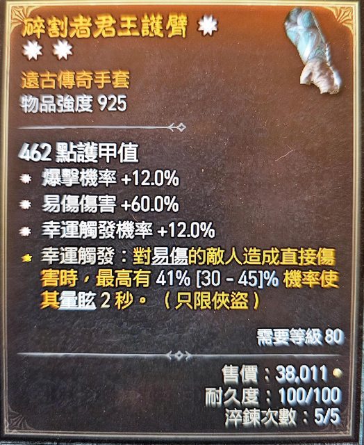 標題[競標] D4 S4 爆率 幸運 易傷 三太古手套