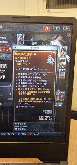終於 就在剛剛偉大的附魔師 ,終於願意給我的俠盜項鍊出現一條惡意加2的屬性,讓小