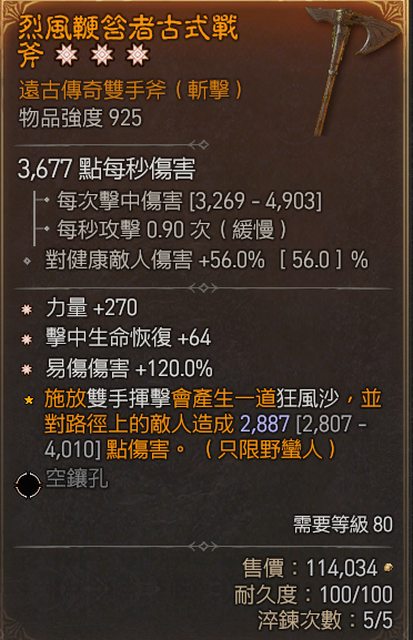 標題[競標] D4 S4 三太古 生命/易傷/擊中回復 雙手斧