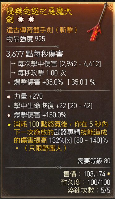 標題[競標] D4 S4 雙太古力量爆傷雙手劍