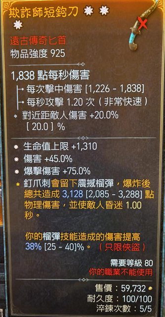 標題[競標] D4 三太古匕首 (生命/傷害/爆傷)