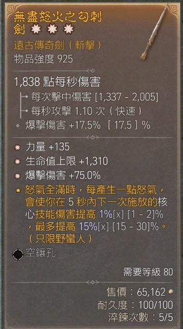物 品:三太古單手劍 力量/生命/爆傷
