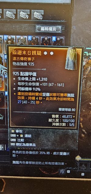 物 品:D4S4 雙太古生命/閃避褲