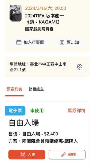 備註:票券為朋友協助購入,不得退票