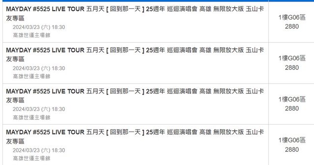 標題[售票] 【售】五月天週六場玉山卡友*4