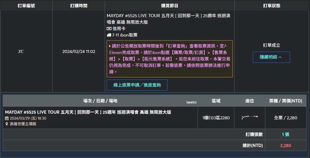 標題[售票] 五月天3/29成軍日 看台區$2280一張