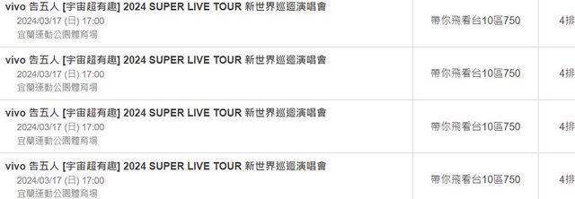 標題[售票] 【售】告五人週日10區4排750*4