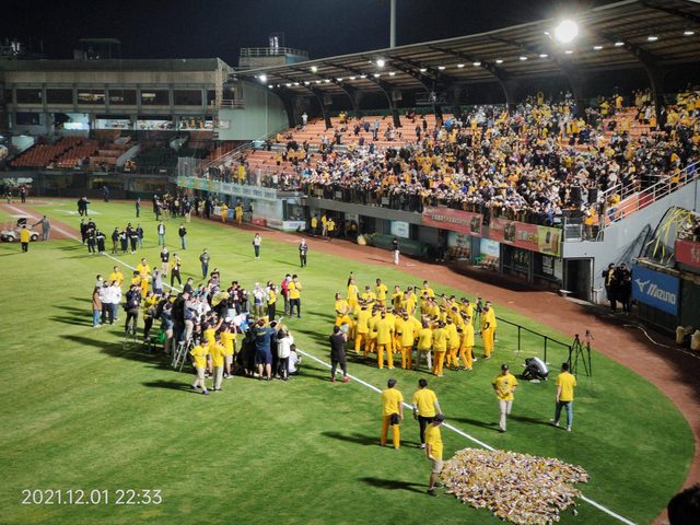 開頭先廢話嘮叨一下 算一算上半季進場場次 包含洲際及客場桃園、新莊 也有差不多20幾場 期間經歷了開季大低潮 助下恰上 戰績回穩 上半季末爭冠失利 心情 從滿心期待 到憤怒、失落、疑惑 再到重燃生機 最終希望落空 季中休賽期間 一直在想自己是否太沉迷 上班看直播跟轉播文,下班看精華,休假衝球場 這樣的生活日復一日重複著 夜深人靜整理照片時 問問自己 值得嗎? 2021 年度總冠軍