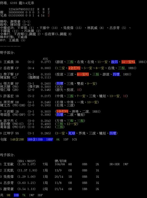 標題[情報] G193 龍3:4兄弟 全場數據box