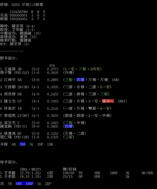 標題[情報] G202 兄弟1:3桃猿 全場數據box