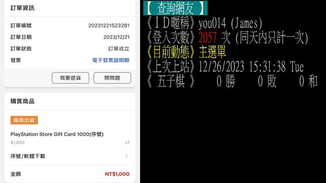 ★【物品名稱】:PSN點數 1000*1 (86折)