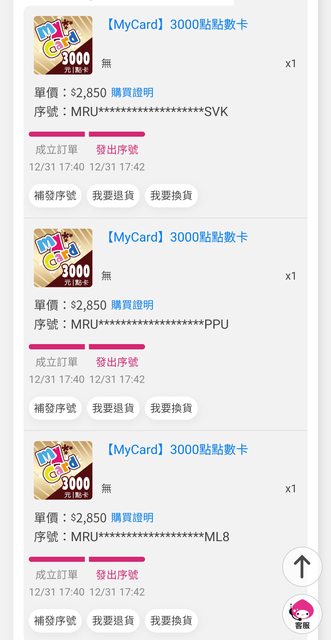 ★【物品名稱】:MyCard點數 3000 x3