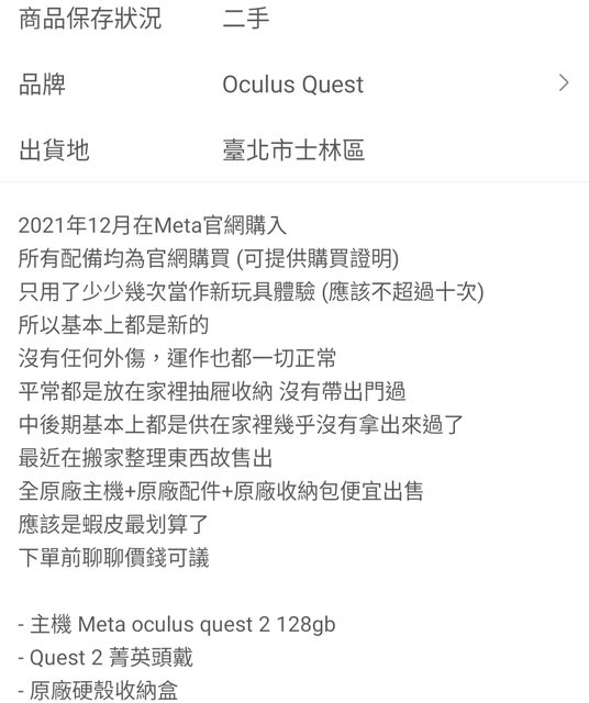 標題[其他] Oculus Meta Quest2 128G + 原廠收納包