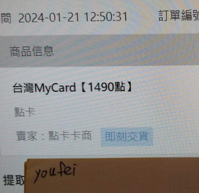 ★【物品名稱】:mycard點數 88折
