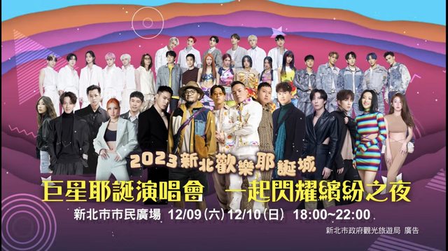 2023新北歡樂耶誕城「巨星耶誕演唱會-一起閃耀繽紛之夜」將於12月9日、10日連續兩天