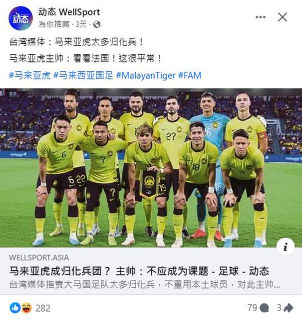 說有台灣媒體罵馬來西亞太多歸化兵