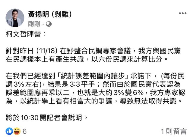 標題 Re: [新聞] 快訊/侯友宜盼重比民調 柯文哲明早正式