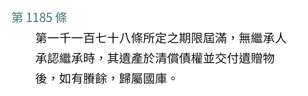 → poggssi: 沒人繼承確實是充公 111.240.159.13 11/27 20:30