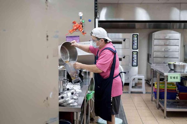 服刑時參與自主監外作業的林淑惠,假釋後,在原本服務的長照中心繼續擔任廚師。(攝影