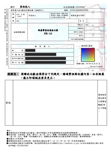 每筆政治獻金都會有捐款收據