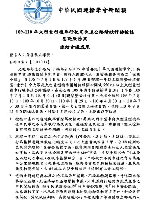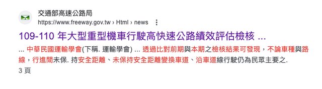 : 間隔的意識仍不足,經過中華民國運輸學會評估,認為現階段仍不適合讓重機上國道,「