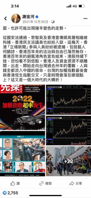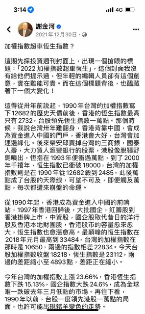 標題Re: [新聞] 等了30年!台股大盤指數超越港股「黃金