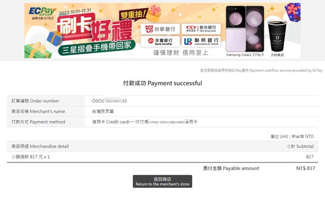 標題是付款成功