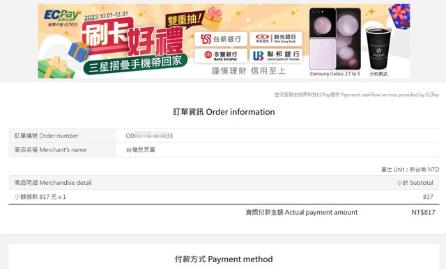 才會顯示付款方式