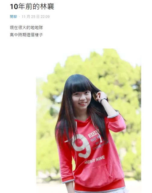 網友在網站Dcard發文「10年前的林襄」,指出高中時期是長這個樣子。照片中可見,高