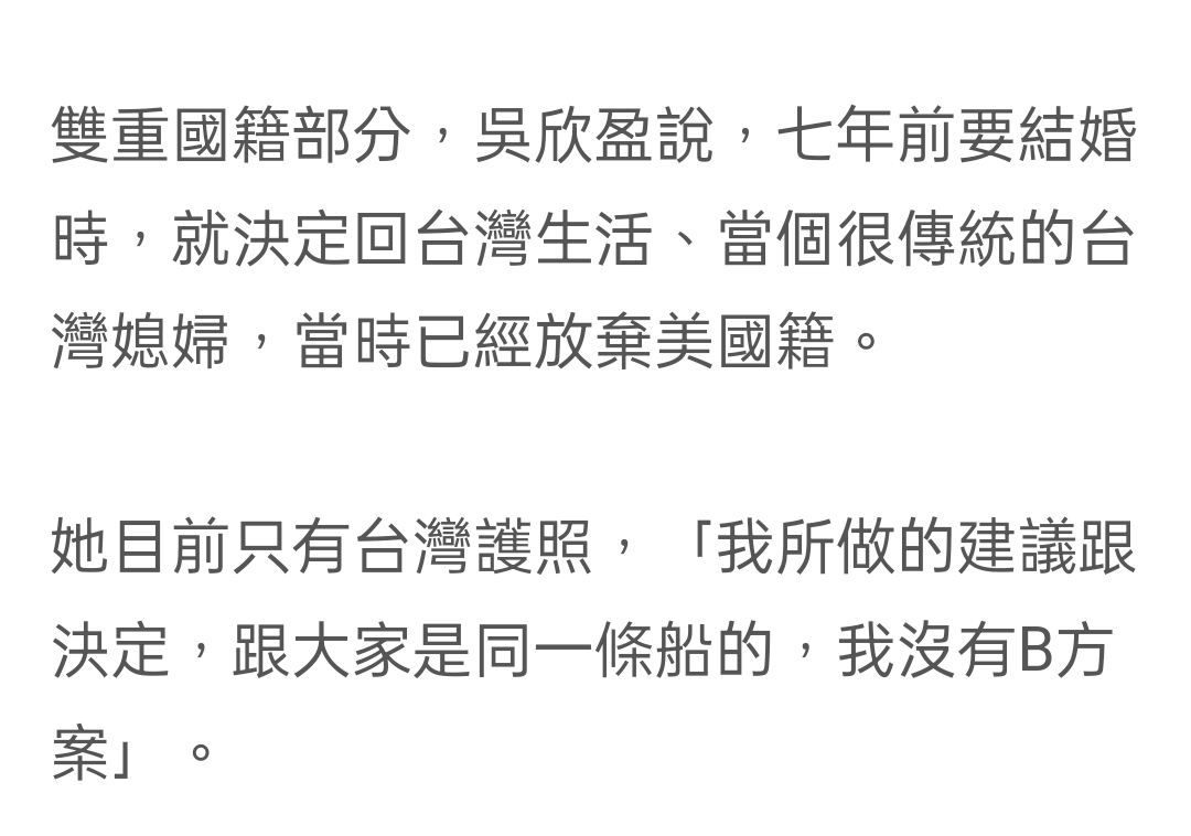推 SeeT: 她原本有美國籍嗎?若是本來就沒有怎麼放棄 39.9.34.12 11/29 13:38