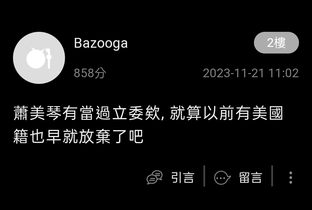 → leonian: 蕭美琴也是用當立委時就放棄啊 證明呢? 101.137.38.144 11/29 13:50