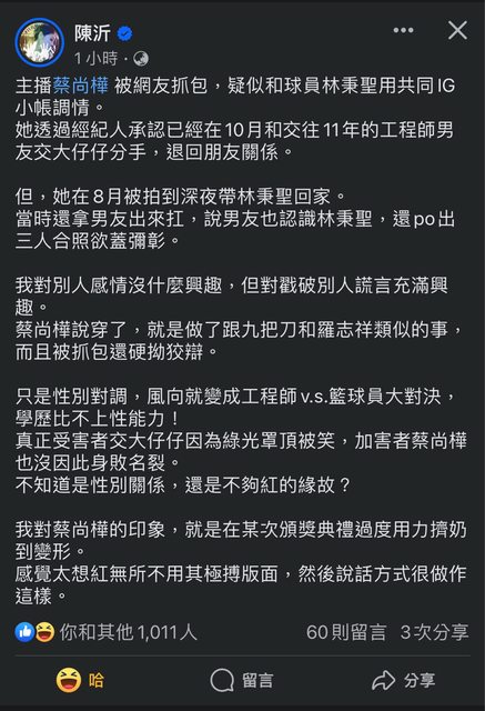 → nasuchan: 抓包劈腿,前男友都沒說話是要大家罵什 39.12.8.53 11/29 16:20