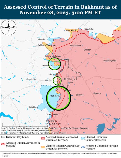 11月28日,俄羅斯軍隊繼續對巴克穆特周圍進行地面攻擊,但沒有任何確認的進展。
