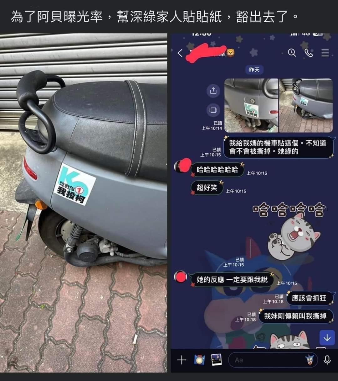 → WeGoYuSheng: 未經同意 把支持柯P的貼紙 貼在家人 223.137.54.3 12/17 17:38